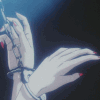 Description: gif from a retro looking anime of two hands struggling against handcuffs